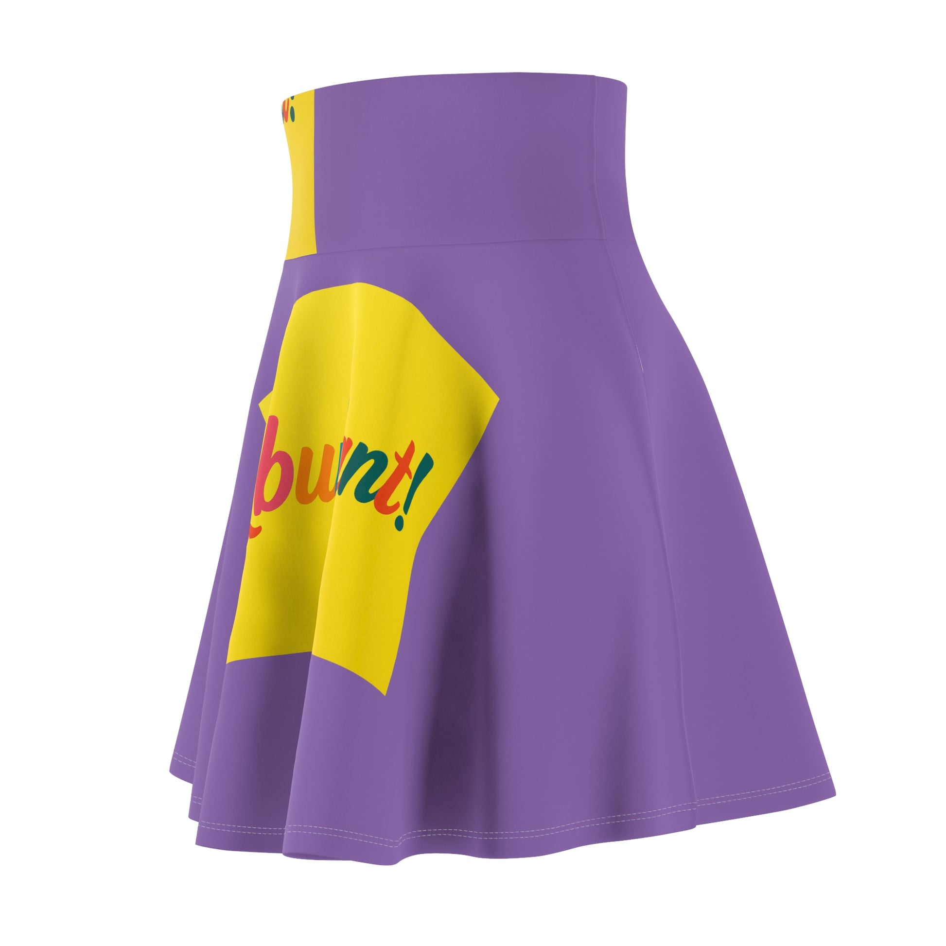 Abundant Rainbow Script Skater Skirt — Purple & Yellow Graphic AOP