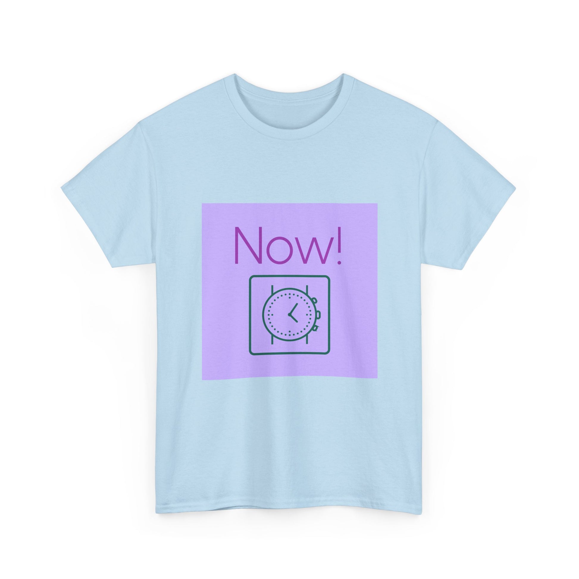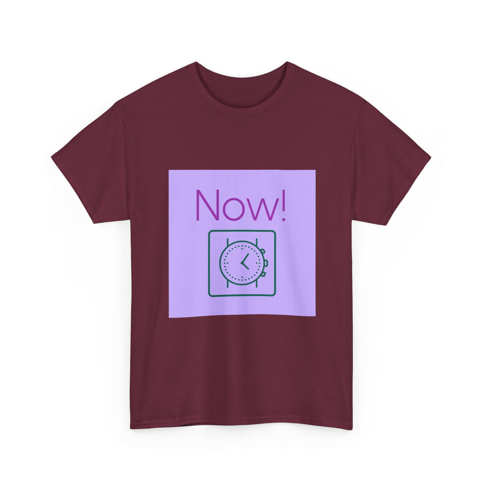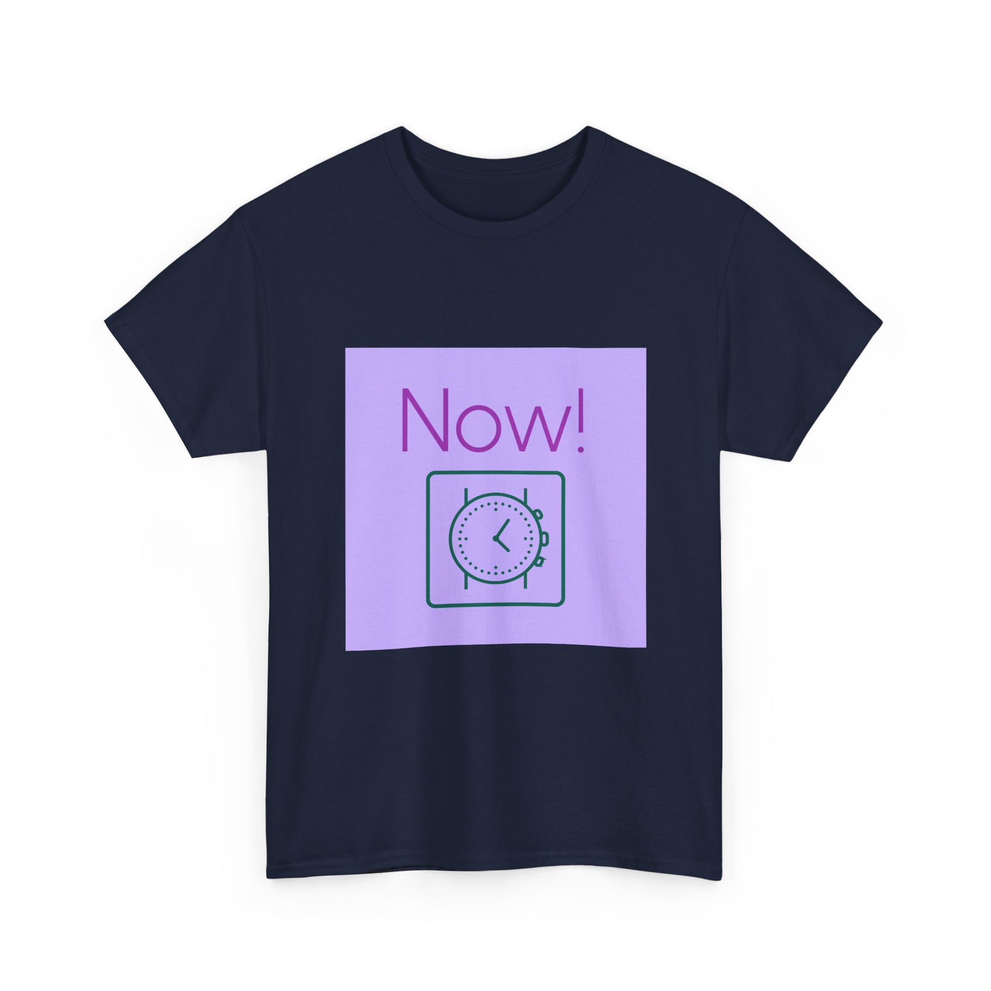 Now! Graphic Tee — Retro Clock Motivational T‑Shirt