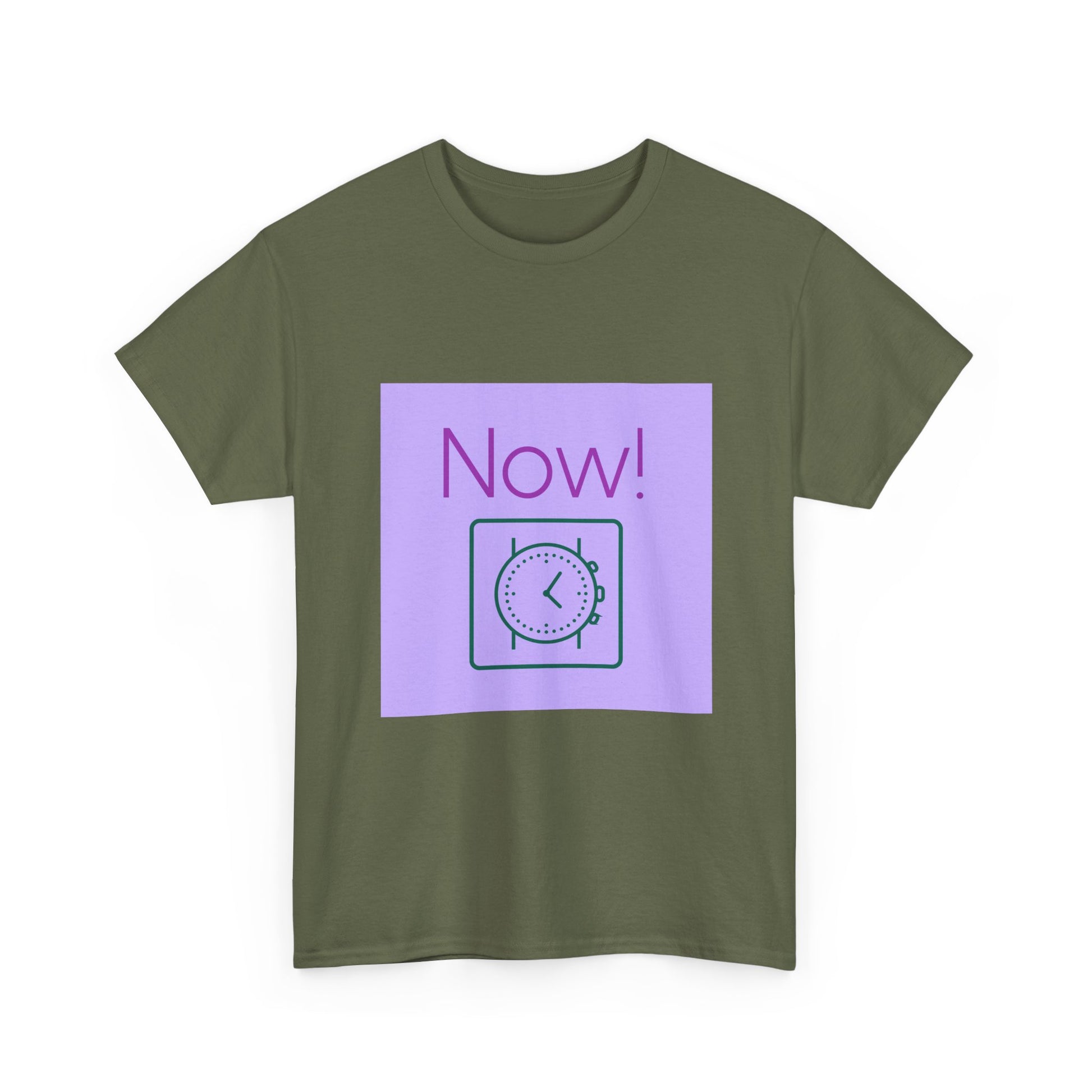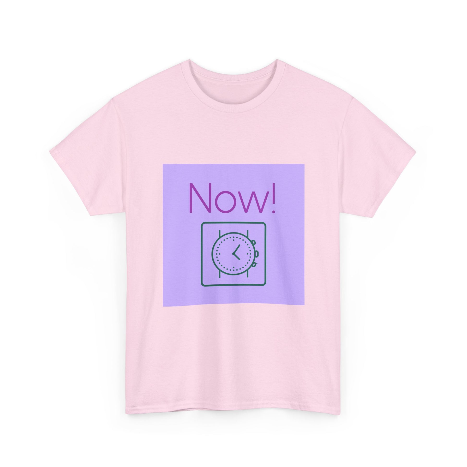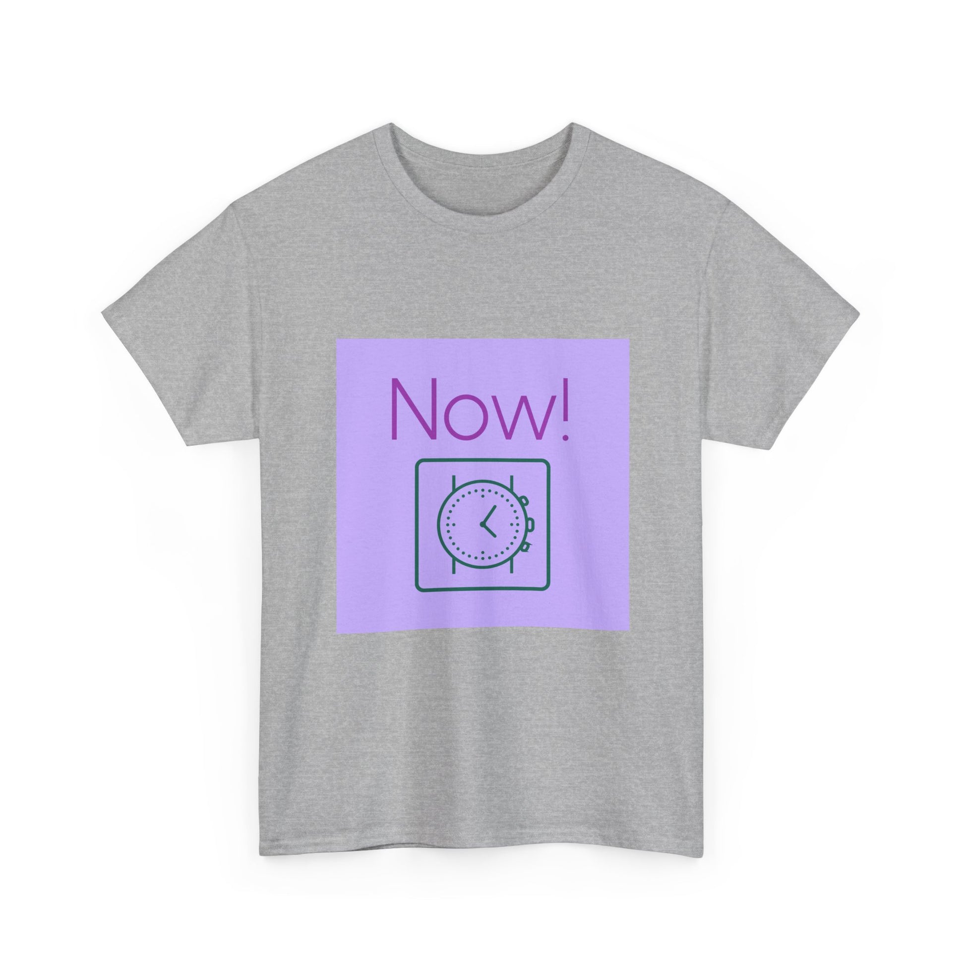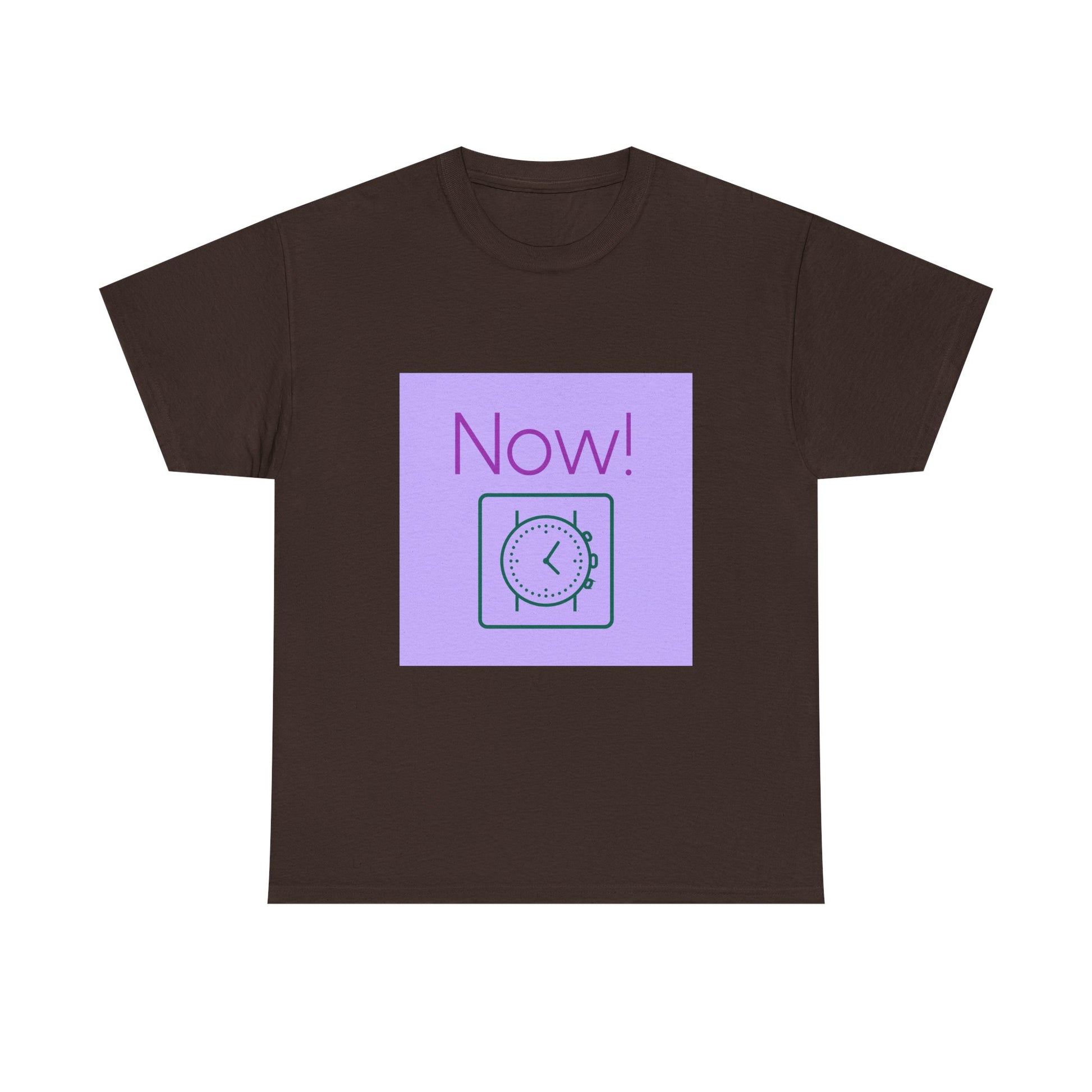 Now! Graphic Tee — Retro Clock Motivational T‑Shirt